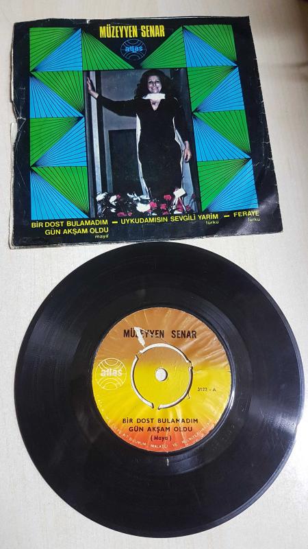 MÜZEYYEN SENAR BİR DOST BULAMADIM GÜN AKŞAM OLDU UYKYDAMISIN SEVGİLİ YARİM FERAYE 45 LİK PLAK KAPAK 7.50 PLAK 8