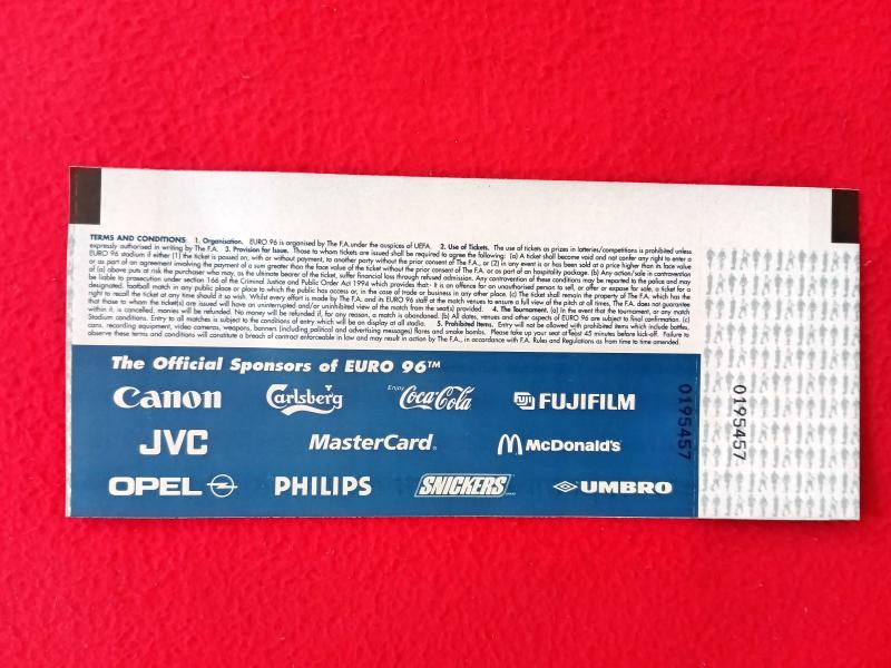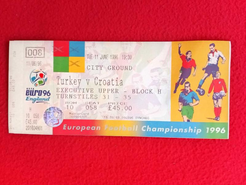 Maç Bileti - Türkiye Milli Futbol Takımı - 11 Haziran 1996 / Türkiye 0-1 Hırvatistan Euro 96 - 11 June 1996 / Turkey 0-1 Croatia - EURO 1996 (Türkiye Milli Takımı'nın İlk Avrupa Şampiyonası Maçı)