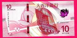 Macau Macao 10 Patacas, 2020(2024), Bank of the Atlantic, UNC (TK 17 427) ÇİL