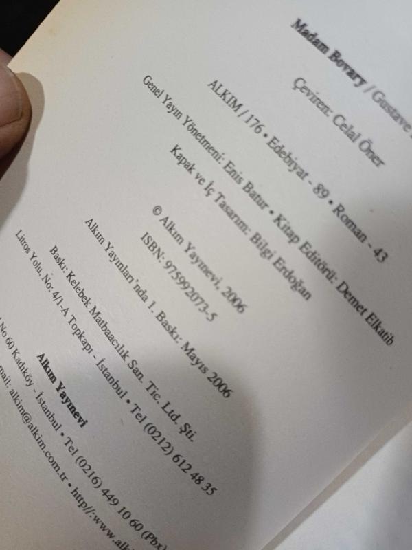 Madam Bovary, Gustave Flaubert tarafından kaleme alınmıştır. Kitap 2006 yılında Alkım Yayınevi tarafından [İstanbul] yayınlanmıştır. Bu baskının çevirisi Serpil Kapsız tarafından yapılmıştır. 288 sayfadır. Madam Bovary adlı eser Türkçe dilindedir.