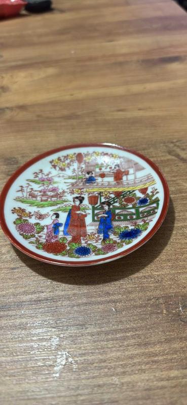 Made in Japan Geisha Temalı Dekoratif Tabak (1950–1970) Japon üretimi, üzerinde geleneksel Geisha figürleri ve çiçek motifleri bulunan dekoratif porselen tabak. Arka damgalı: “Made in Japan”. 1950–1970 dönemi ihracat üretimidir. Renkleri canlı, baskı net ve vitrinde oldukça şık durur. Kırık, çatlak ya da tamir yoktur. Koleksiyon ve dekor amaçlı uygundur. Çapı 11,5 cm, bir ay önce kitantik’te satışa sunulmuştur.