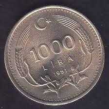 Madeni Para 1000 Lira 1991 yılı
