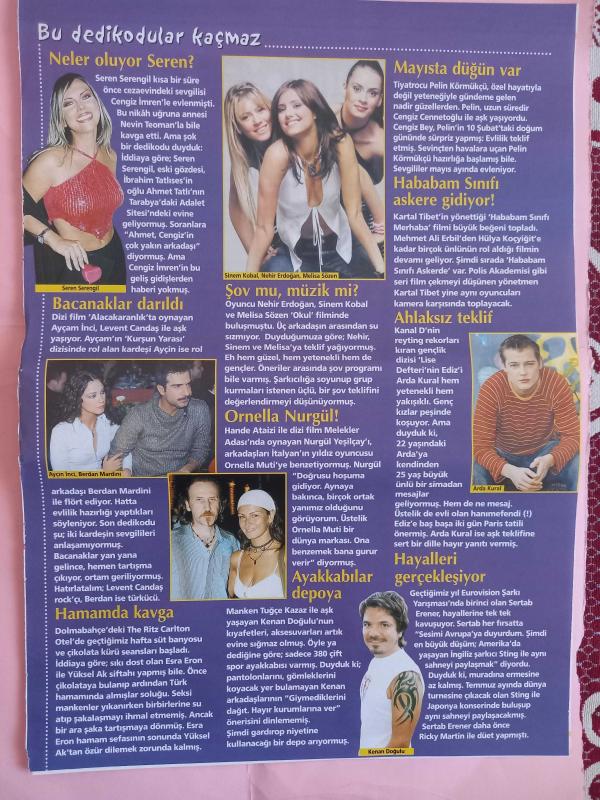 Magazin Dergi önlü arkalı 4 sayfa Osman -Serra Merzeci,Mine Taşkent,Verda Penso,Luciano Pezzotti ,Elizabeth Muscolo,Cemal Özgörbey,Kenan Doğulu,Arda Kural ,Sinem Kobal,Seren Serengil,Berdan Mardini Ayçin İnci,Nehir Erdoğan,Melisa Sözen,Selma Türkeş,Nurettin Hasman,Akın öngörEce Gürsel 28*41cm adlı eser Türkçe dilindedir.