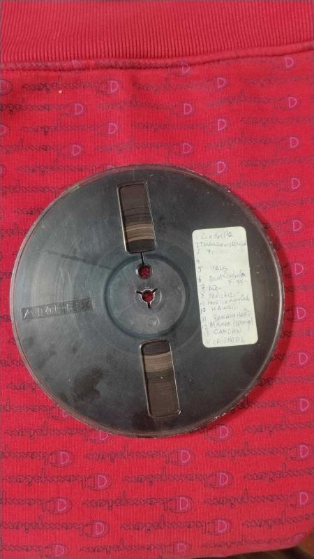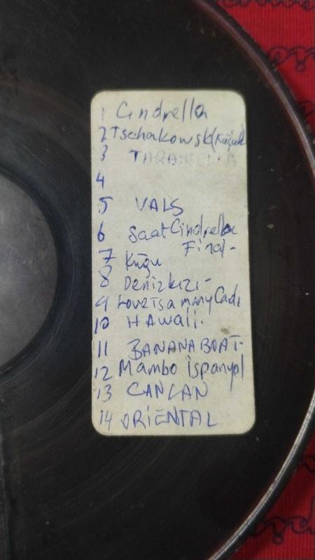 Eskilerden makaralı teyp makarası İçindeki şarkılar liste halinde üzerine yazılmış