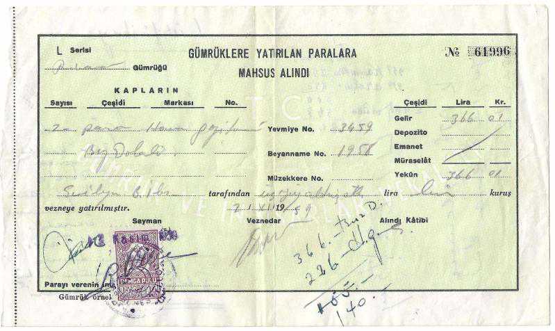 Makbuz: Gümrük ve İnhisarlar Vekaleti / 1959 / Pullu, en son 1 yıl önce güncellenmiştir.