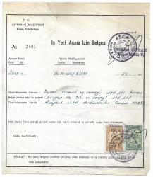 TC Altındağ Belediyesi Küşat Müdürlüğü, işyeri açma izin belgesi, 1985 tarihli.