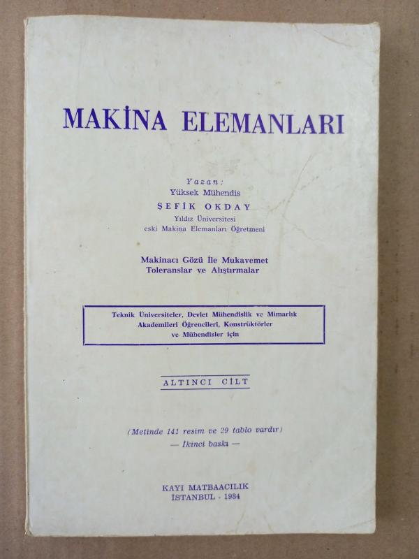 Makina Elemanları 6. Cilt Makinacı Gözü ile Mukavemet Toleranslar ve alıştırmalar, ŞEFİK OKTAY tarafından kaleme alınmıştır. Kitap 1984 yılında Kayı matbaacılık tarafından yayınlanmıştır. 153 sayfadır. Makina Elemanları 6. Cilt Makinacı Gözü ile Mukavemet Toleranslar ve alıştırmalar adlı eser Türkçe dilindedir.