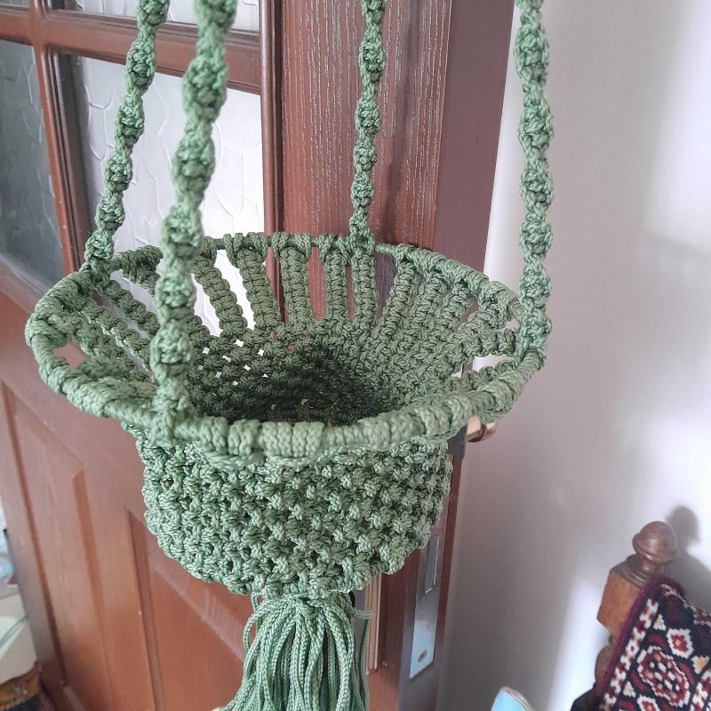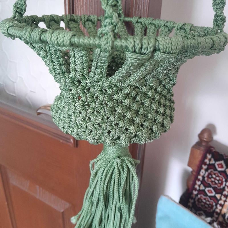 Elde örülmüş makrome saksılık eski dönem ürünü olup çok sağlamdır