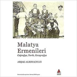 Malatya Ermenileri: Coğrafya, Tarih, Etnografya, Arşag Alboyacıyan tarafından kaleme alınmıştır. Kitap Aras Yayıncılık tarafından yayınlanmıştır. Malatya Ermenileri: Coğrafya, Tarih, Etnografya adlı eser Türkçe dilindedir.