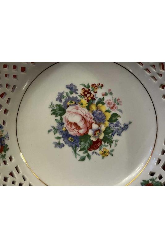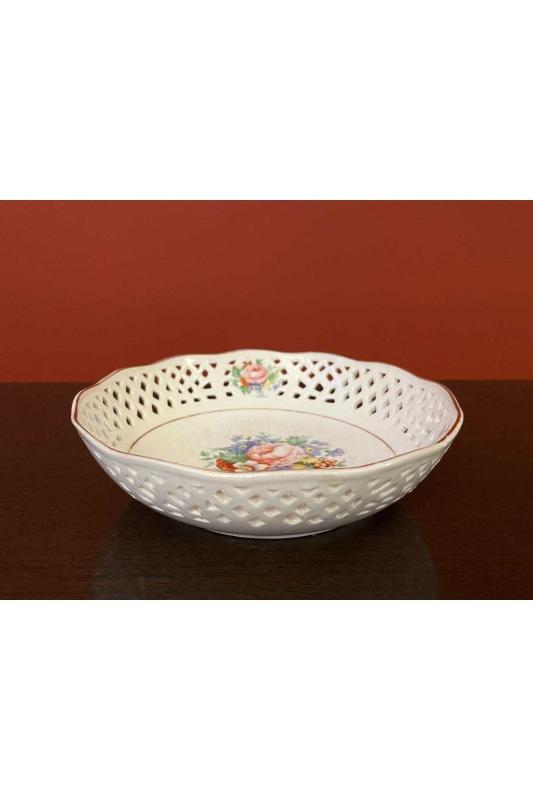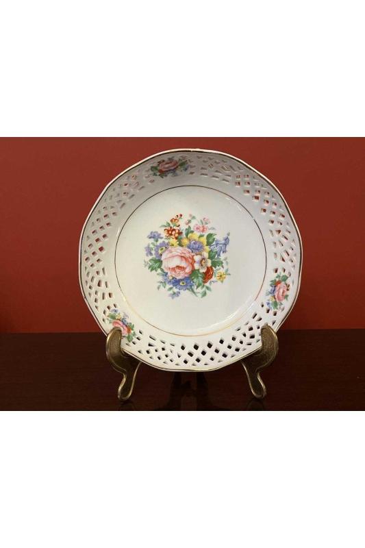 Mandarin el boyama ajurlu çukur tabak sunumluk 16 cm çapında başlıklı antika/koleksiyon objesinin menşei belirtilmemiştir. Objenin ait olduğu dönem bilinmeketedir.