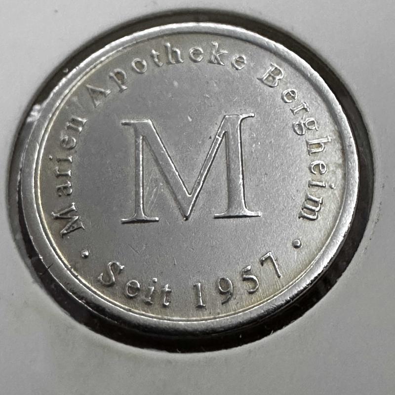 Fotoğraftaki ürün gönderilecektir. Almanya'nın Bergheim kentinde bulunan Marien Apotheke (Marien Eczanesi) isimli işletmeye ait bir eczane jetonu veya hatıra parasıdır. İşte üzerindeki yazıların anlamları: • Marien Apotheke Bergheim: Eczanenin adı ve bulunduğu şehir (Bergheim, Kuzey Ren-Vestfalya eyaletindedir). • Seit 1957: "1957'den beri" anlamına gelir; bu, eczanenin kuruluş tarihidir. • Büyük "M" Harfi: Eczanenin ismini (Marien) temsil eden logodur. Bu Jeton Ne İçin Kullanılıyordu? Bu tür paralar resmi bir devlet para birimi değildir. Almanya'daki eczaneler bunları genellikle şu amaçlarla kullanır: 1. Müşteri Sadakati: Müşteriler alışveriş yaptıkça bu jetonlardan toplar ve daha sonra bunları küçük hediyeler, indirimler veya bazen eczane önündeki otopark ücretini ödemek için kullanırlardı. 2. Reklam: Müşterinin cüzdanında kalan, markayı hatırlatan bir tür "kalıcı kartvizit" görevi görür. Marien-Apotheke (Marien Eczanesi) Almanya'nın Bergheim kentinde hala hizmet vermeye devam ediyor. Eczane ile ilgili güncel bilgiler şu şekildedir: • Adres: Hauptstraße 16, 50126 Bergheim, Almanya. • Durum: Şu an açık ve faaliyet gösteriyor. • Çalışma Saatleri: • Hafta içi (Pazartesi - Cuma): 08:30 – 18:30 • Cumartesi: 09:00 – 13:00 • Pazar: Kapalı • İletişim: +49 2271 42665 • Web Sitesi: apothekebergheim.de Bu eczane, Bergheim'ın merkezindeki yaya bölgesinde (Hauptstraße) yer alıyor ve jetonun üzerinde de yazdığı gibi 1957 yılından beri aynı aile tarafından işletilen köklü bir kurum. Elinizdeki bu jeton, muhtemelen yıllar önce sadık müşterilere verilen bir hatıra veya indirim markasıdır. Satın aldığınız tüm ürünler celikcollection güvencesiyle tek bir kargo paketi yapılarak en kısa süre içerisinde tarafınıza gönderilecektir. Tüm ürünlerim aksi belirtilmedikçe orijinaldir ve %100 iade garantilidir. İyi alışverişler dilerim.