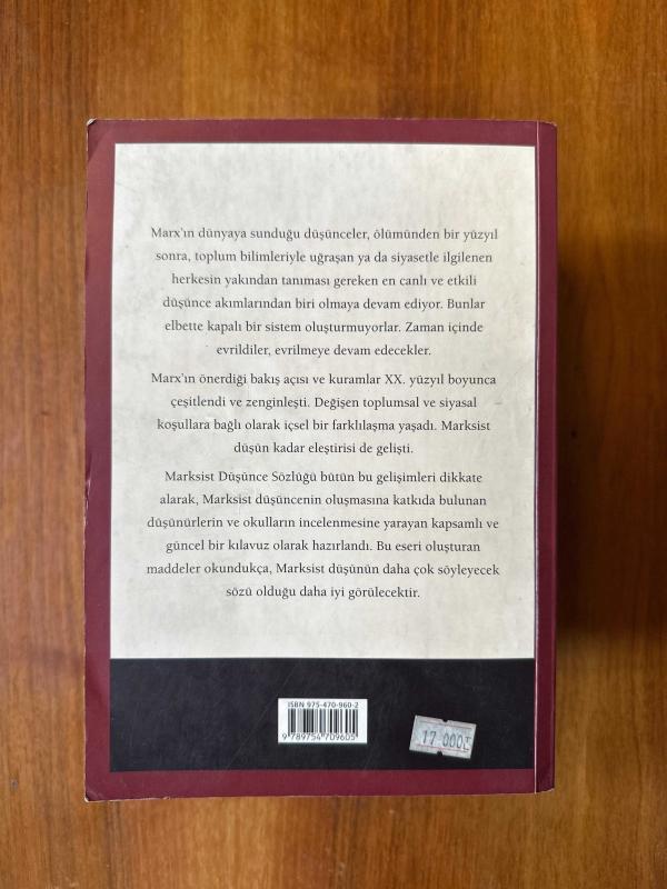Marksist Düşünce Sözlüğü ( Karton Kapak) adlı eser, Kitap > Sosyal Bilimler > Siyaset kategorisinde İkinci El olarak satıştadır.