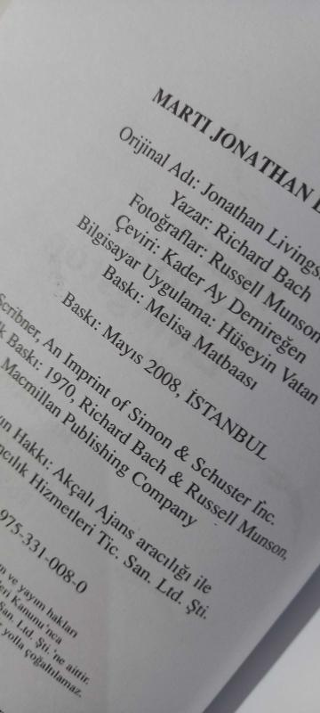 Martı Jonathan Livingston, Richard Bach tarafından kaleme alınmıştır. Kitap 2008 yılında Epsilon Yayıncılık tarafından [İstanbul] yayınlanmıştır. 80 sayfadır. Martı Jonathan Livingston adlı eser Türkçe dilindedir.