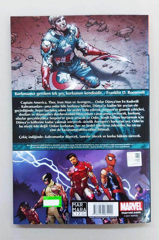 Marvel - Korkunun Kendisi ( Avengers ) Çizgi Roman - 2015 Nadir Baskı, Matt Fraction tarafından kaleme alınmıştır. Kitap 2015 yılında Marmara Çizgi tarafından yayınlanmıştır. 276 sayfadır. Marvel - Korkunun Kendisi ( Avengers ) Çizgi Roman - 2015 Nadir Baskı adlı eser Türkçe dilindedir.