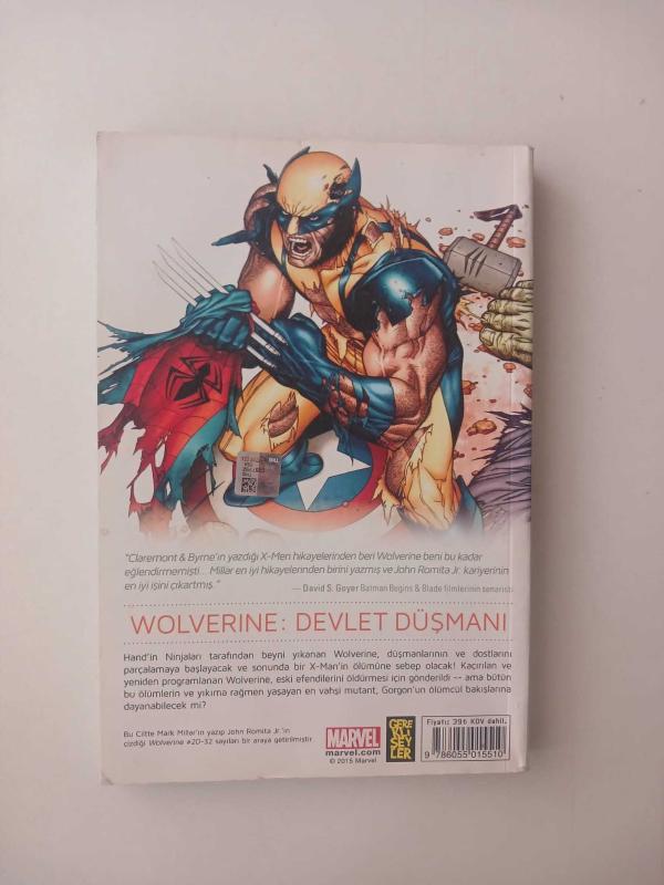 Marvel - Wolverine: Devlet Düşmanı, Mark Millar, Çizen: J. Romita Jr. tarafından kaleme alınmıştır. Kitap 2015 yılında Gerekli Şeyler Yayıncılık tarafından [İstanbul] yayınlanmıştır. Bu baskının çevirisi Tulgan Köksal tarafından yapılmıştır. 328 sayfadır. Marvel - Wolverine: Devlet Düşmanı adlı eser İngilizce dilindedir.