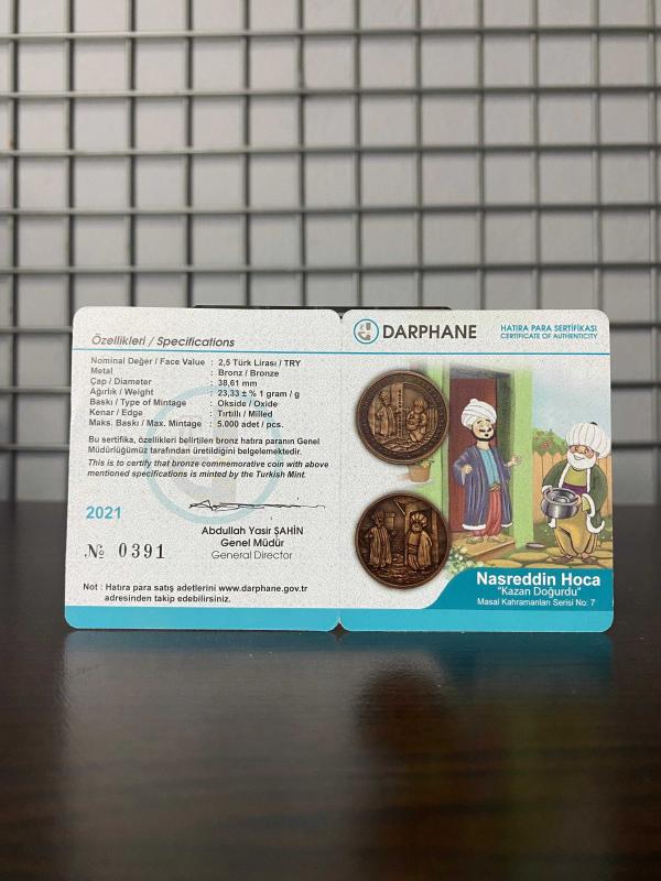 Masal Kahramanları Serisi No7 - Nasrettin Hoca Kazan Doğurdu Hatıra Para Sertifikalı 2021 (Bronz)