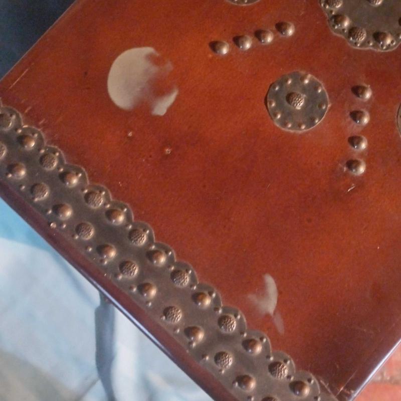 Tamamen masiften uretilmis ,ayakli kapakli,aynali ve metal iscilikli sandik. Fevkalade durumda. Sadece kapakta 2 adet leke mevcut (bkz fotolar),uzerine sicak bardak koymaktan kaynaklandi. 60x45x35 cm olculerinde.