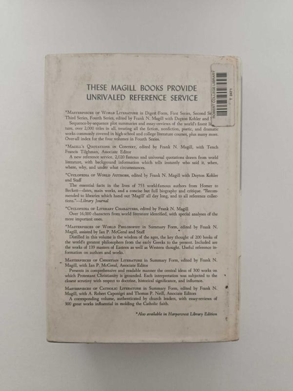 Eser Frank N. Magill editörlüğünde hazırlanmıştır. Kitap 1961 yılında [The United States Of America] yayınlanmıştır. 1.166 sayfadır. Masterpiece of World Philosophy in Summary Form adlı eser Türkçe dilindedir.