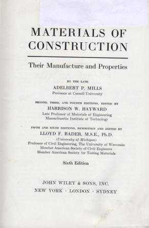 Materials of Construction / Their Manufacture and Properties (Sahaf - Yeni Gibi) / 1967 Yılı Bez Ciltli 6. Baskısı, Adelbert P. Mills - Harrison W. Hatward - Lloyf F. Rader tarafından kaleme alınmıştır. Kitap 1967 yılında John Wiley tarafından [ABD] yayınlanmıştır. Satışta olan kitap, yayınevinin 6. baskısıdır. 650 sayfadır. Sayfa bilgisi 1. Hamur Beyaz Kağıt olarak belirtilmiştir. Materials of Construction / Their Manufacture and Properties (Sahaf - Yeni Gibi) / 1967 Yılı Bez Ciltli 6. Baskısı adlı eser İngilizce dilindedir.