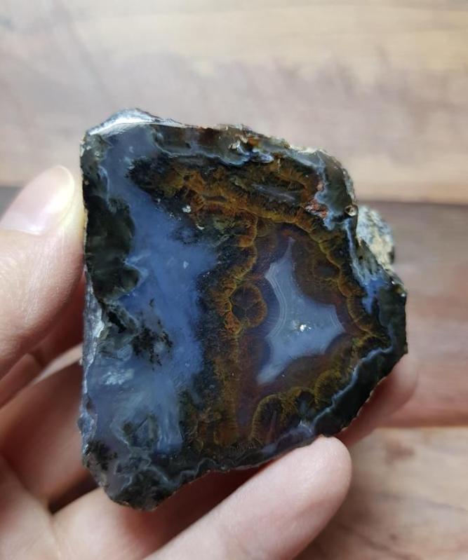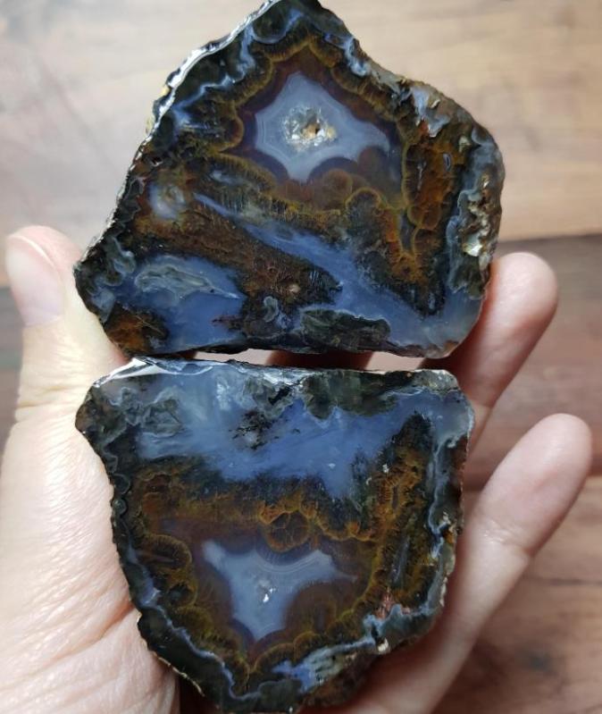 Mavi Alev Desenli Akik Çifti ve Minik Jeodlar • Lav Dalgası Deseni • Dönüşüm ve İçsel Güç Taşı - Ağırlık: 228g - Benzersiz Koleksiyonluk Nadir Parça, dün kitantik’te satışa sunulmuştur.