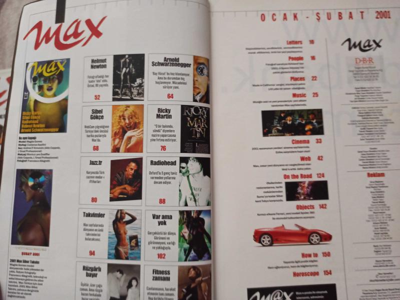 Max Dergisi- Ocak-Şubat 2001- Ricky Martin- Sibel Gökçe- Radiohead- Helmut Newton- Arnold Schwarzenegger- Rüzgarlı Bayır- Takvimler- Var Ama Yok- Fitness Zamanı