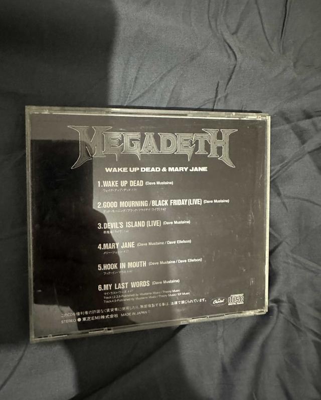 📀 CD’nin bilgisi • Albüm / Single: Wake Up Dead • Grup: Megadeth • Katalog: TOCP-7591 • Ülke: Japonya • Çıkış: 24 Şubat 1993 (Megabox Single Collection serisi) Bu CD aslında 5 CD’lik Megabox Single Collection setinin 1. diski. Çiziksiz sıfırdan farksız .