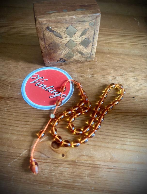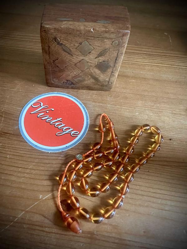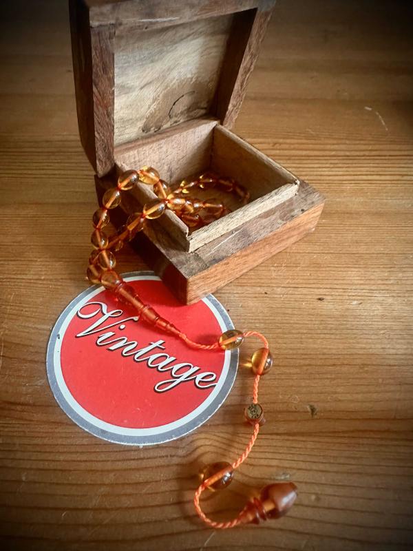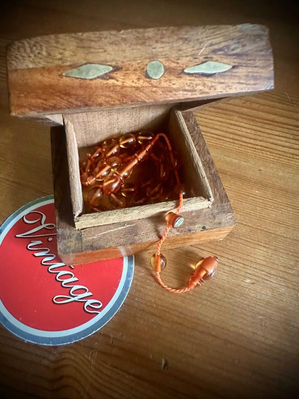 Hediye Vintage Pirinç marküteri işçilikli ahşap kutuda(kutu kullanılmış eski dönem) Mehmet Kar usta logolu kehribar tesbih… mükemmel bir hediyelik… #tespih #kehribar #ustaimzalı #damgalı #ustaimzalıtesbih