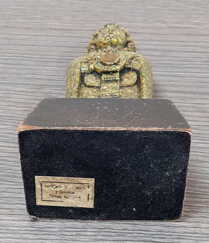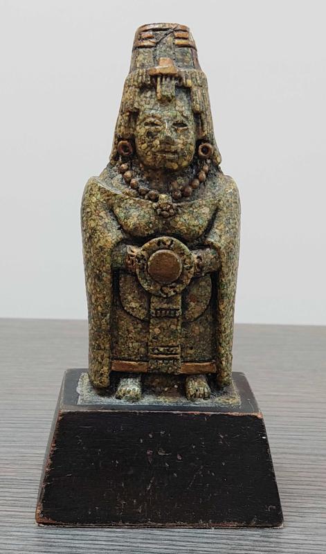 Meksika, Aztek/Yüksek Rütbeli Kadın Temalı Heykel. Yeşil Malakit (Malahit) Taşlı, Karışık Reçine Döküm ve Ahşap Kaideli. 1950-1960'ler. Mükemmel Detaylı ve Zanaatkarlar Tarafından Özenle Üretilmiştir. (6x8,5x16,5 cm) başlıklı antika/koleksiyon objesi Amerika menşe’lidir. 1940-1959 arası dönemine aittir.