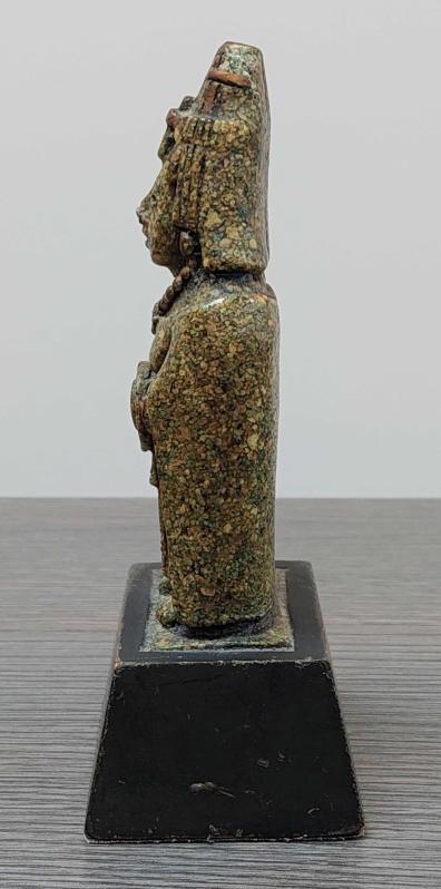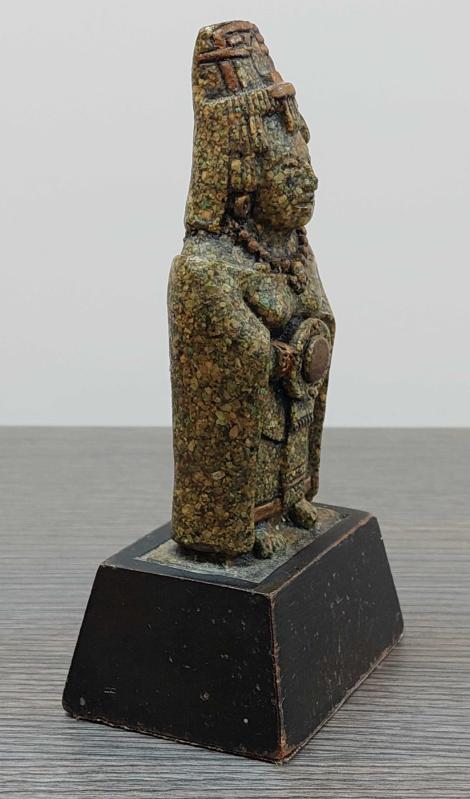 Meksika, Aztek/Yüksek Rütbeli Kadın Temalı Heykel. Yeşil Malakit (Malahit) Taşlı, Karışık Reçine Döküm ve Ahşap Kaideli. 1950-1970'ler. Mükemmel Detaylı ve Zanaatkarlar Tarafından Özenle Üretilmiştir. (6x8,5x16,5 cm)