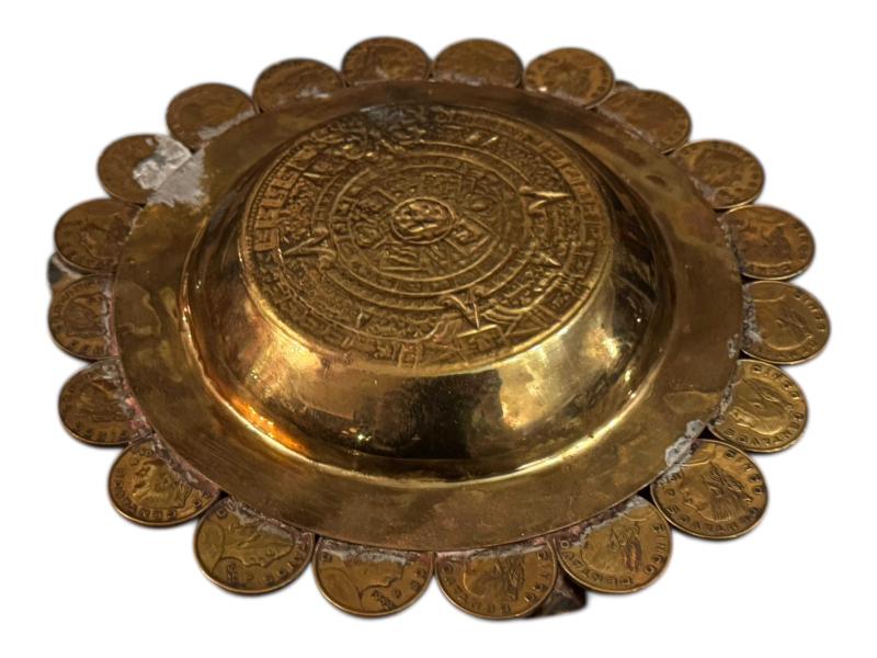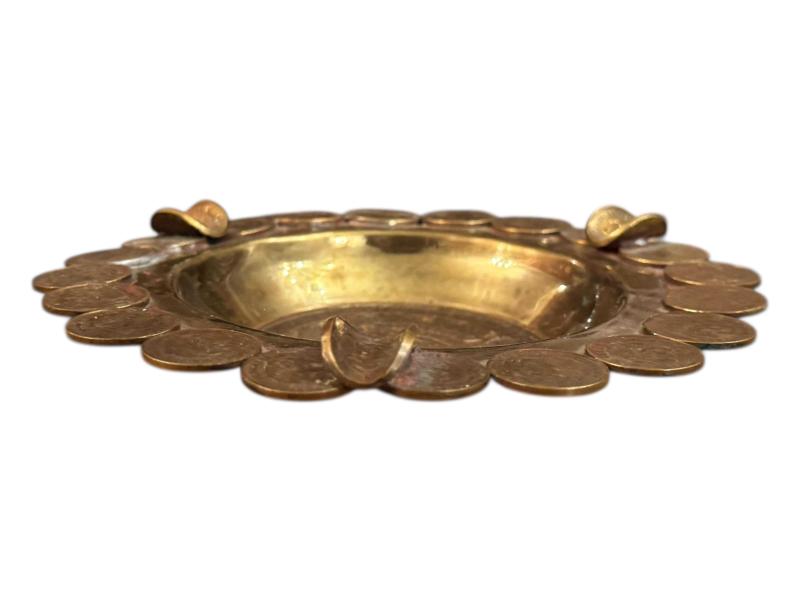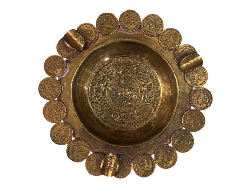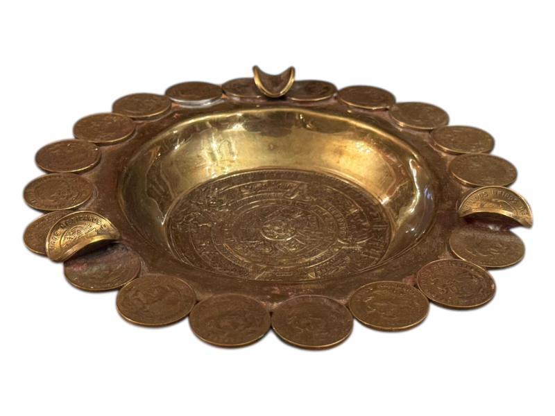 Meksika paralarından yapılmış 15 cm çapında pirinç küllük kül tablası.