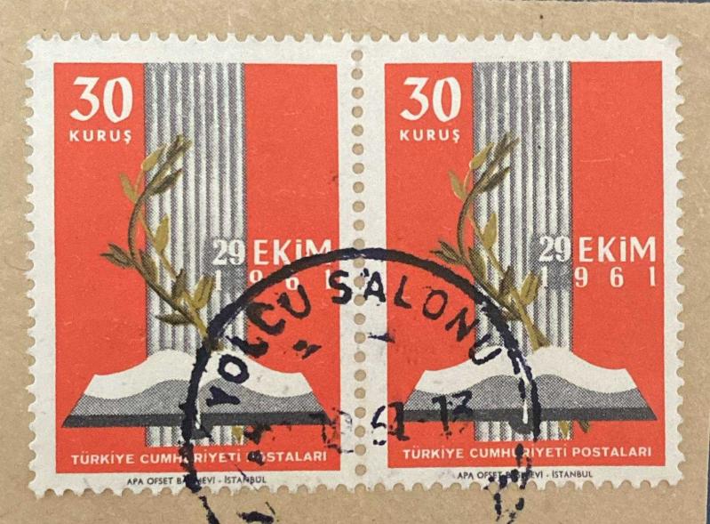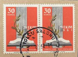 Mektup Zarfından Kesilmiş / Postadan Geçmiş İkili Pul Filateli - 1961 Damgalı - 29 EKİM 1961 TEMALI PUL - Türkiye Cumhuriyeti - Turkish Stamp - NOSTALJİK DOĞUM GÜNÜ HEDİYESİ, 10 ay önce satışa sunulmuştur.