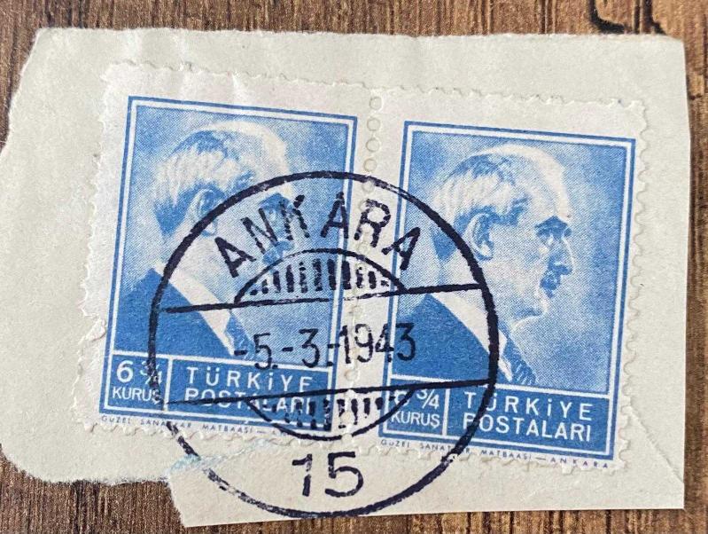 Mektup Zarfından Kesilmiş / Postadan Geçmiş İkili Pul Filateli - Ankara, 5 Mart 1943 Damgalı - İSMET İNÖNÜ, 6 3/4 KURUŞ - Türkiye Cumhuriyeti, en son 1 yıl önce güncellenmiştir.