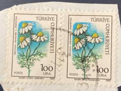 Mektup Zarfından Kesilmiş / Postadan Geçmiş İkili Pul Filateli - Damgalı - PAPATYA PULU, 100 LİRA - Türkiye Cumhuriyeti, en son 1 yıl önce güncellenmiştir.