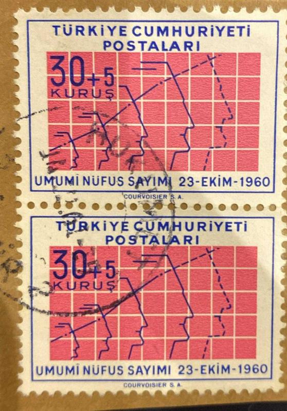 Mektup Zarfından Kesilmiş / Postadan Geçmiş İkili Pul Filateli - Damgalı - UMUMİ NÜFUS SAYIMI 23 EKİM 1960, 30+5 KURUŞ - Türkiye Cumhuriyeti - Turkish Stamp - NOSTALJİK DOĞUM GÜNÜ HEDİYESİ, 1 yıl önce satışa sunulmuştur.