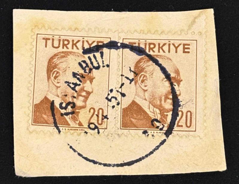 Mektup Zarfından Kesilmiş / Postadan Geçmiş İkili Pul Filateli - İstanbul 19 Nisan 1951 Damgalı - ATATÜRK - 20 PARA - Türkiye Cumhuriyeti, 1 yıl önce satışa sunulmuştur.