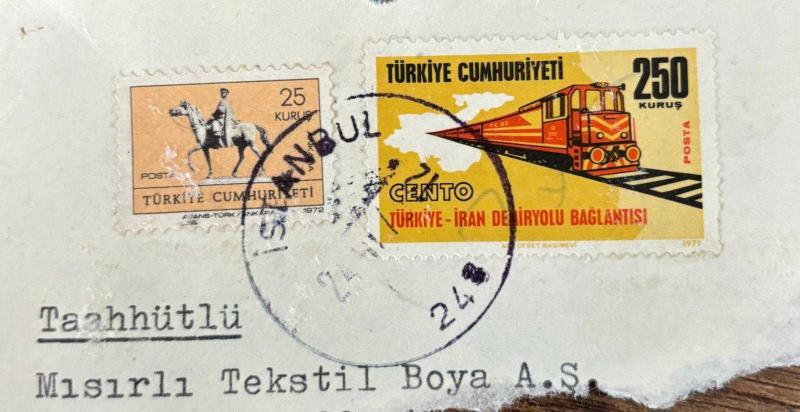 Mektup Zarfından Kesilmiş / Postadan Geçmiş İkili Pul Filateli - İstanbul 24 Nisan 1973 Damgalı -ANKARA ATLI ATATÜRK, 25 KURUŞ / TÜRKİYE İRAN DEMİRYOLU BAĞLANTISI, 250 KURUŞ- Türkiye Cumhuriyeti, 1 yıl önce satışa sunulmuştur.