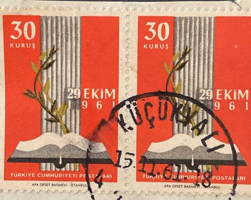 Mektup Zarfından Kesilmiş / Postadan Geçmiş İkili Pul Filateli - Küçükyalı, 15.11.1961 Damgalı - 29 EKİM 1961 TEMALI PUL, 30 KURUŞ - Türkiye Cumhuriyeti - Turkish Stamp - NOSTALJİK DOĞUM GÜNÜ HEDİYESİ, 10 ay önce satışa sunulmuştur.