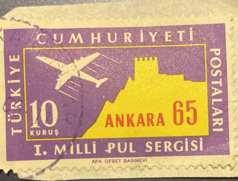 Mektup Zarfından Kesilmiş / Postadan Geçmiş Pul Filateli - 1965 Damgalı - ANKARA 65 I. MİLLİ PUL SERGİSİ , 10 KURUŞ - Türkiye Cumhuriyeti, en son 1 yıl önce güncellenmiştir.