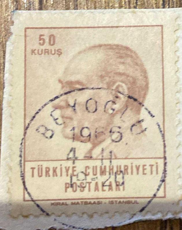 Mektup Zarfından Kesilmiş / Postadan Geçmiş Pul Filateli - Beyoğlu, 4 Şubat 1966 Damgalı - ATATÜRK, 50 KURUŞ - Türkiye Cumhuriyeti, 1 yıl önce satışa sunulmuştur.