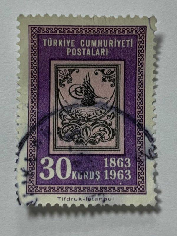 Mektup Zarfından Kesilmiş / Postadan Geçmiş Pul Filateli - Damgalı - 100.YIL TEMALI PUL (1863-1963) - 30 KURUŞ - Türkiye Cumhuriyeti, 1 yıl önce satışa sunulmuştur.