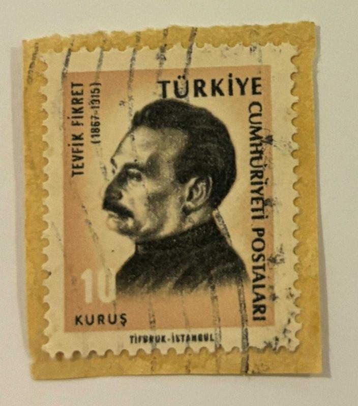 Mektup Zarfından Kesilmiş / Postadan Geçmiş Pul Filateli - Damgalı - TEVFİK FİKRET (1867-1915) - 10 KURUŞ - Türkiye Cumhuriyeti