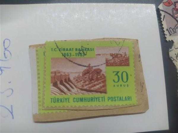Mektup Zarfından Kesilmiş / Postadan Geçmiş Pul Filateli - Damgalı - TÜRKİYE ZİRAAT BANKASI 1863-1963 , 30 KURUŞ - Türkiye Cumhuriyeti, 6 ay önce satışa sunulmuştur.