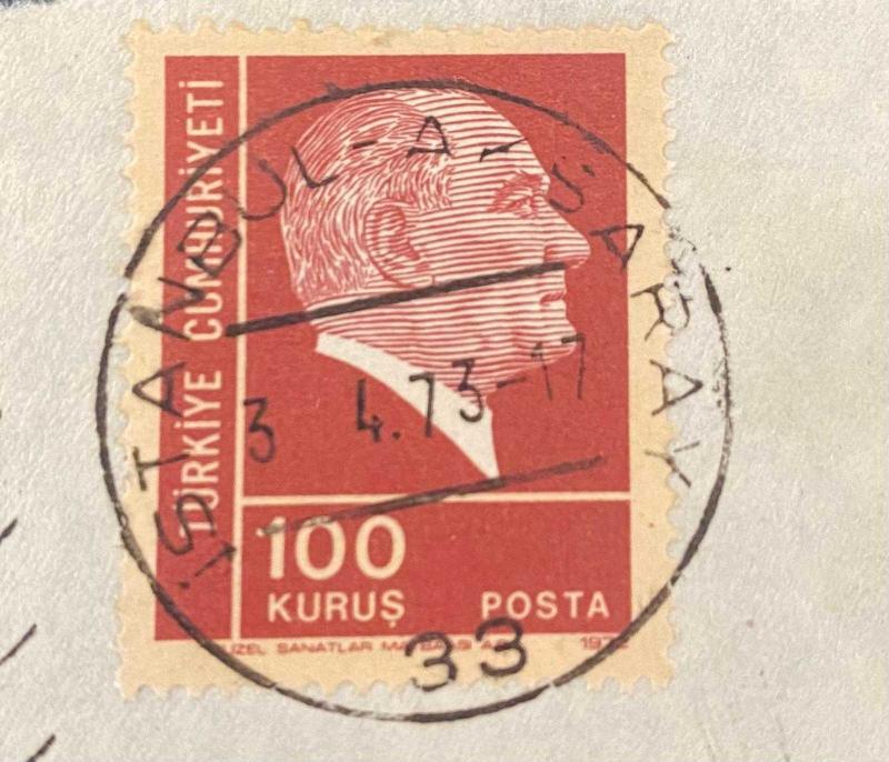 Mektup Zarfından Kesilmiş / Postadan Geçmiş Pul Filateli - İstanbul Aksaray, 3 Nisan 1973 Damgalı - ATATÜRK, 100 KURUŞ - Türkiye Cumhuriyeti, 1 yıl önce satışa sunulmuştur.