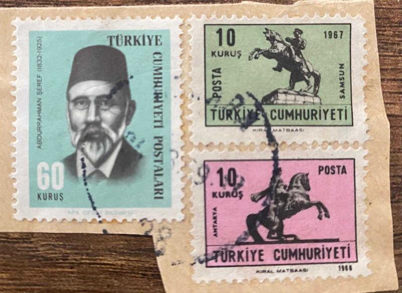 Mektup Zarfından Kesilmiş / Postadan Geçmiş Üçlü Pul Filateli - Damgalı -ABDURRAHMAN ŞEREF , 60 KURUŞ / ATLI ATATÜRK SAMSUN, 10 KURUŞ / ATLI ATATÜRK ANTAKYA, 10 KURUŞ- Türkiye Cumhuriyeti, en son 1 yıl önce güncellenmiştir.