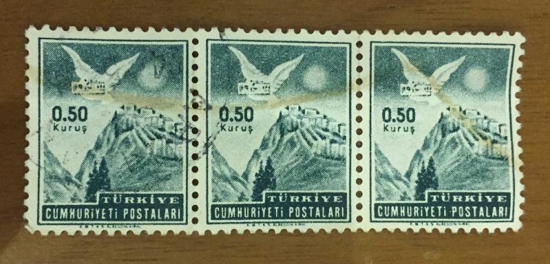 Mektup Zarfından Kesilmiş / Postadan Geçmiş Üçlü Pul Filateli - Mektup taşıyan güvercin, 0,50 KURUŞ - Türkiye Cumhuriyeti, en son 1 yıl önce güncellenmiştir.