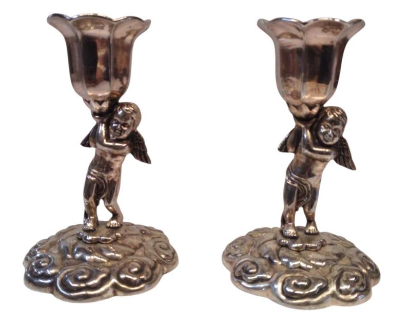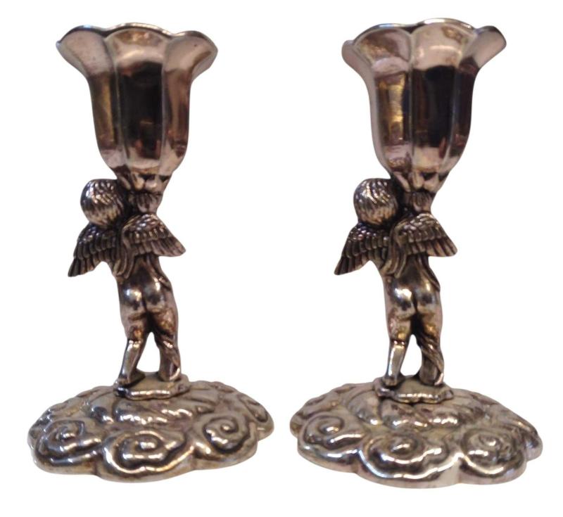 Melek Formunda Şamdan (2 Adet) Eski Temiz Ürün Alman Gümüşü Yükseklik : 11 cm Üst Çap : 4.2 cm Alt Çap : 6.8 cm