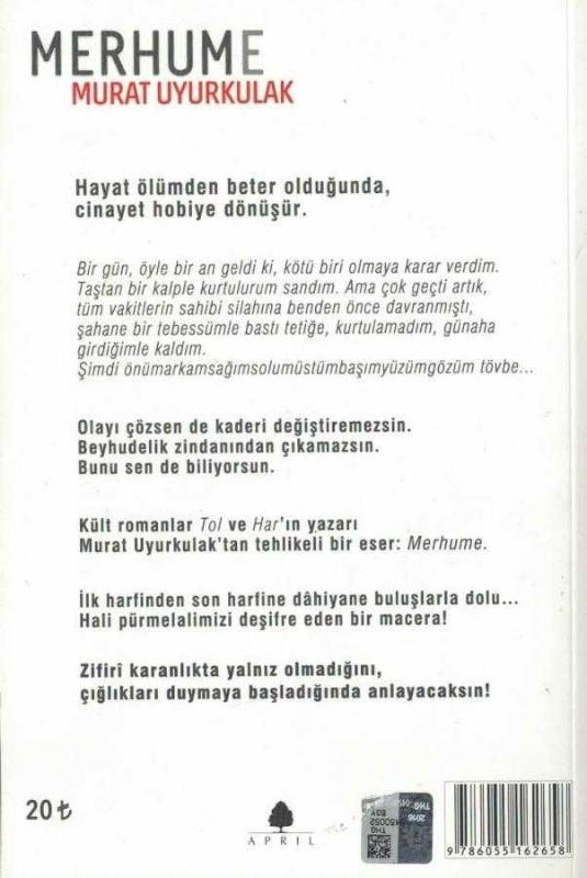 Merhume, Murat Uyurkulak tarafından kaleme alınmıştır. Kitap 2016 yılında April Yayınları tarafından yayınlanmıştır. 314 sayfadır. Merhume adlı eser Türkçe dilindedir.