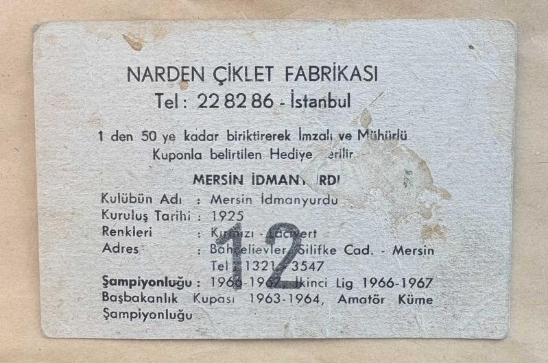 Mersin İdman Yurdu / Narden Çiklet Fabrikası başlıklı ürün, Efemera, Müzik, Sinema > Kurum/Reklam Malzemeleri > Diğer Reklamlar kategorisi altında İkinci El olarak satılmaktadır.