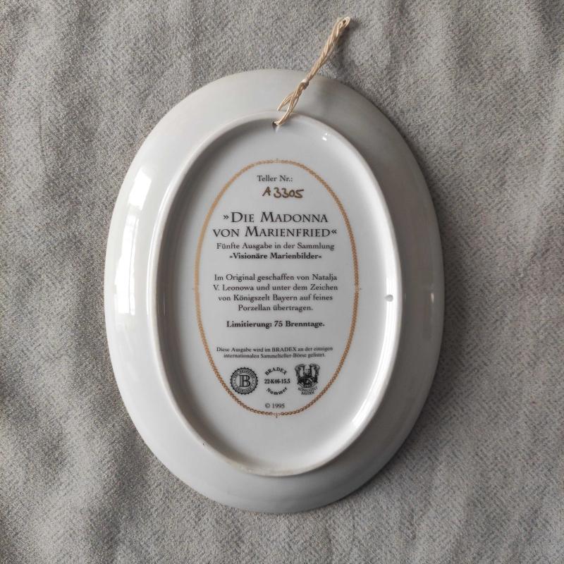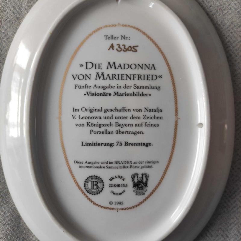 * Meryam Ana Görselli Seri Numaralı Eski Duvar Tabağı * Alman, seri numaralı, sınırlı üretim, nadir koleksiyonluk ürün. * Sırlı porselen dekoratif obje. * Üründe herhangi bir kusur mevcut değildir. * ( 22 x 17 x 2,5 cm ) * Seri No: A 3305