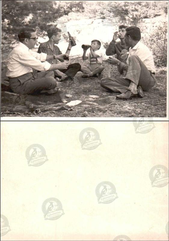 Mesire Alanı, Fotoğraf, 1950’ler: Ağaçlık alanda yere oturmuş beş kişilik grup ve bir çocuk, şişeler ve kâğıtlarla piknik molası., 3 gün önce satışa sunulmuştur.